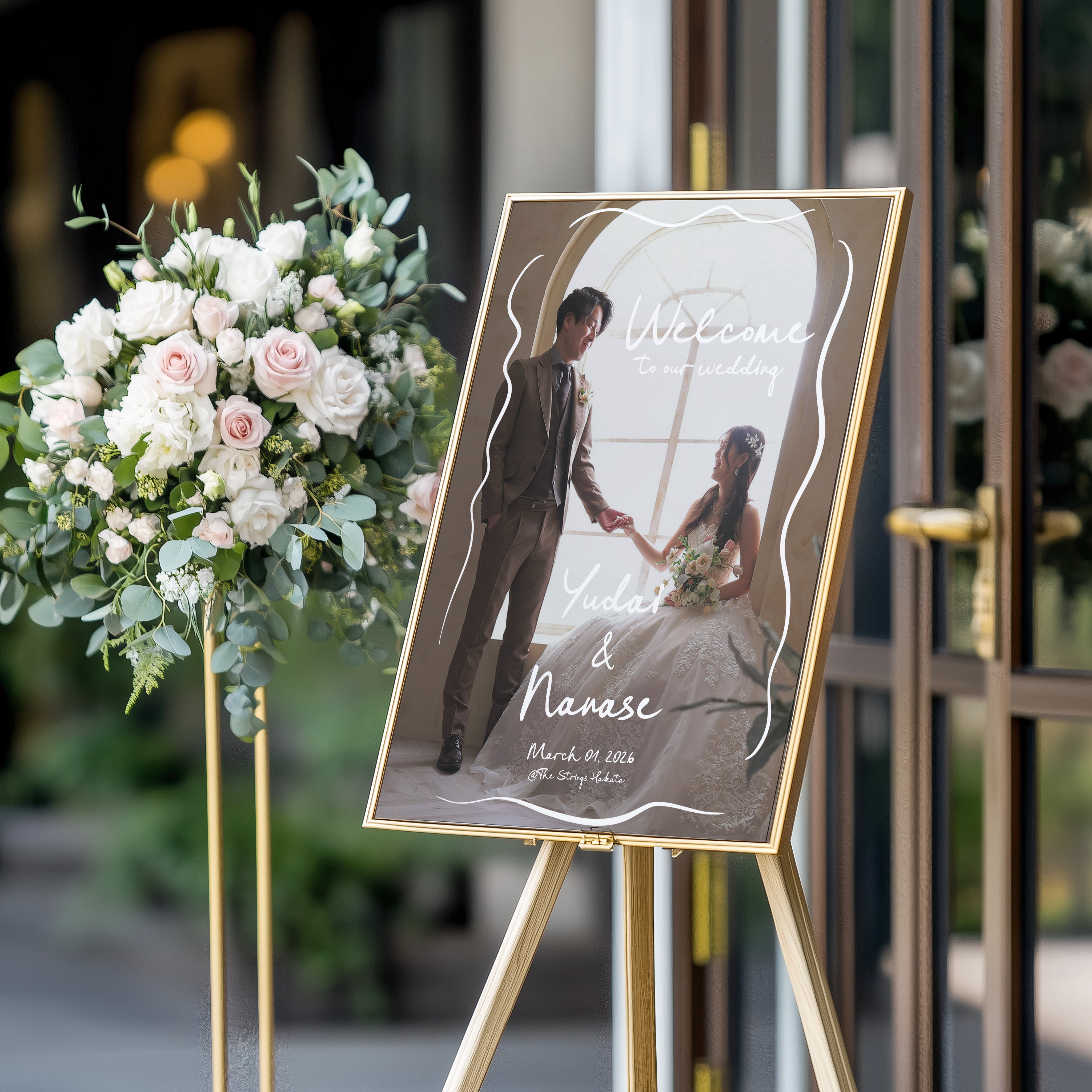 写真、文字色、背景色、記載内容は「無料」で自由に変更可能ですので結婚式だけでなくその他お祝いごとやショップ、サロンの看板にもオススメです♪