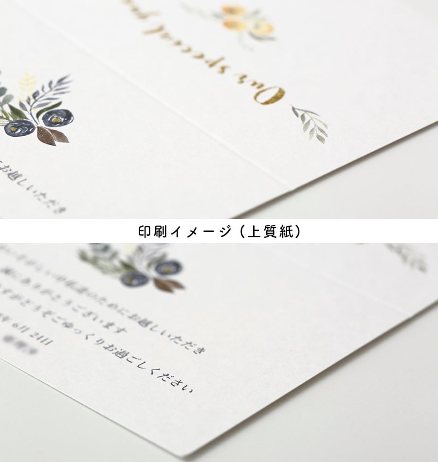 ※背景色有りのデザイン(いわゆるベタ塗り)は使用するカラーにもよりますが色ムラが発生しやすくなります。PCやスマホの画面上とは違い、紙に印刷する場合は湿度や温度等によって紙自体が歪みズレが生じます。また、使用する紙によって画面上で見る色味よりもくすんだお色味になる場合がございます。なるべく影響を少なくする様に印刷を工夫しますが色々な原因が重なっている場合、色の変化、ムラを避けられない場合がございますので必ずご了承のうえご注文をお願いします。
