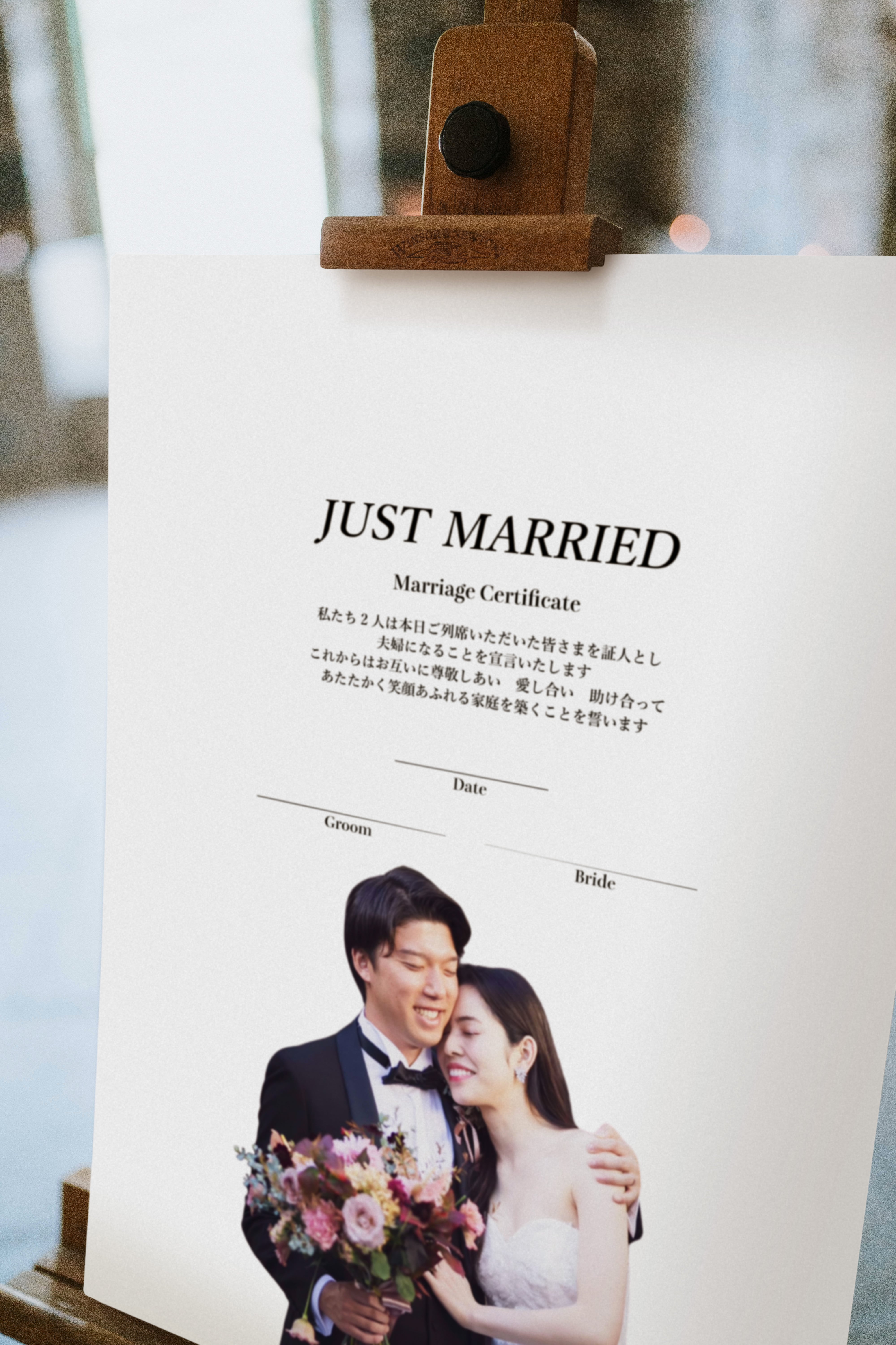 ゲスト参加型の楽しいウェルカムボード兼結婚証明書です。