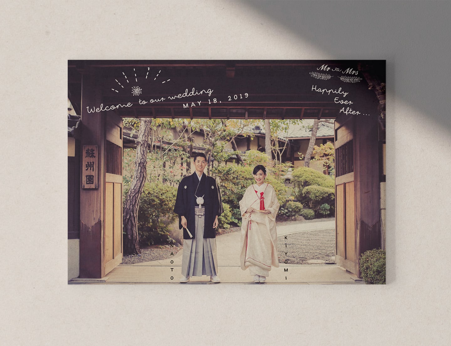 お写真の空いているところにかわいい文字やモチーフを散りばめてデザインします。