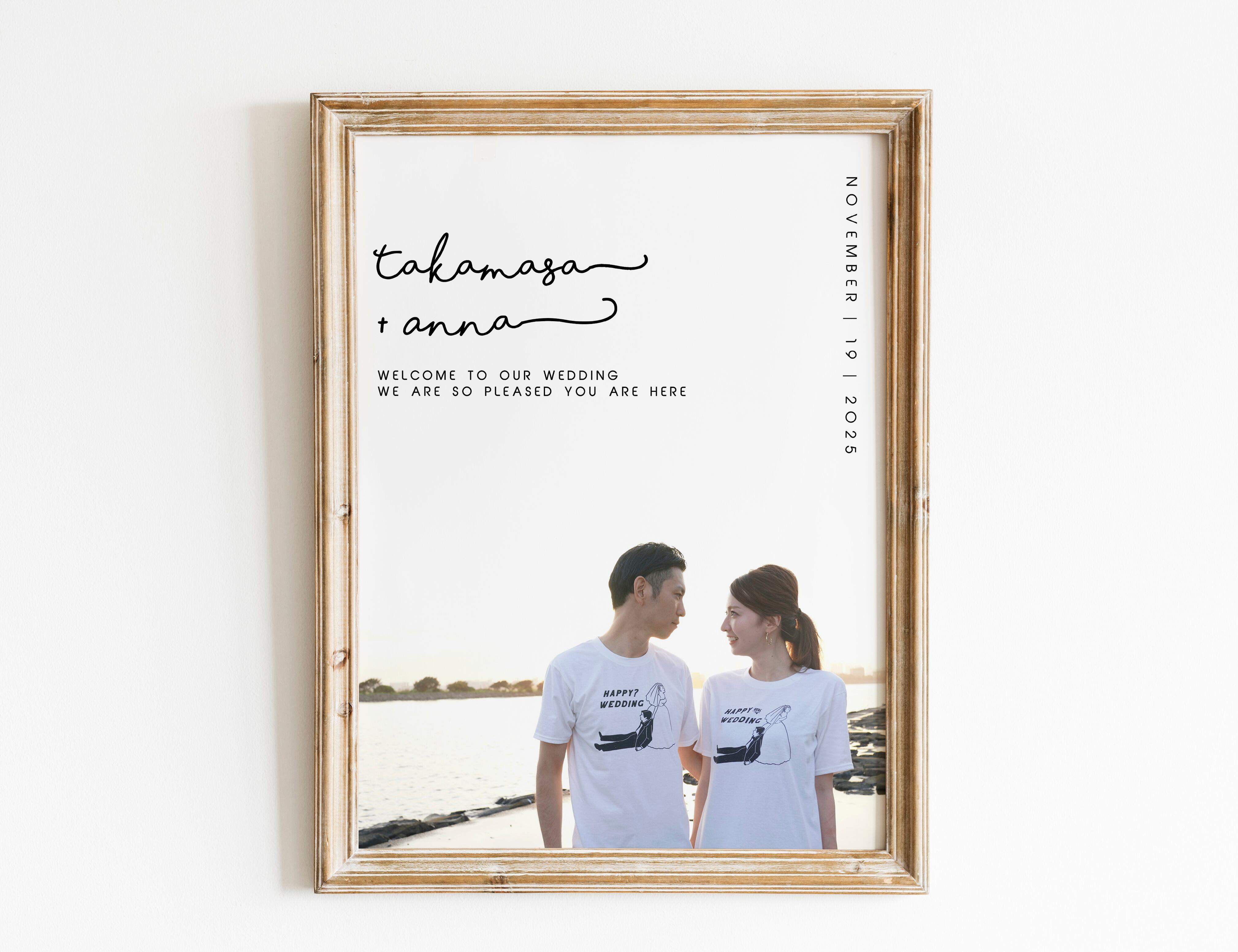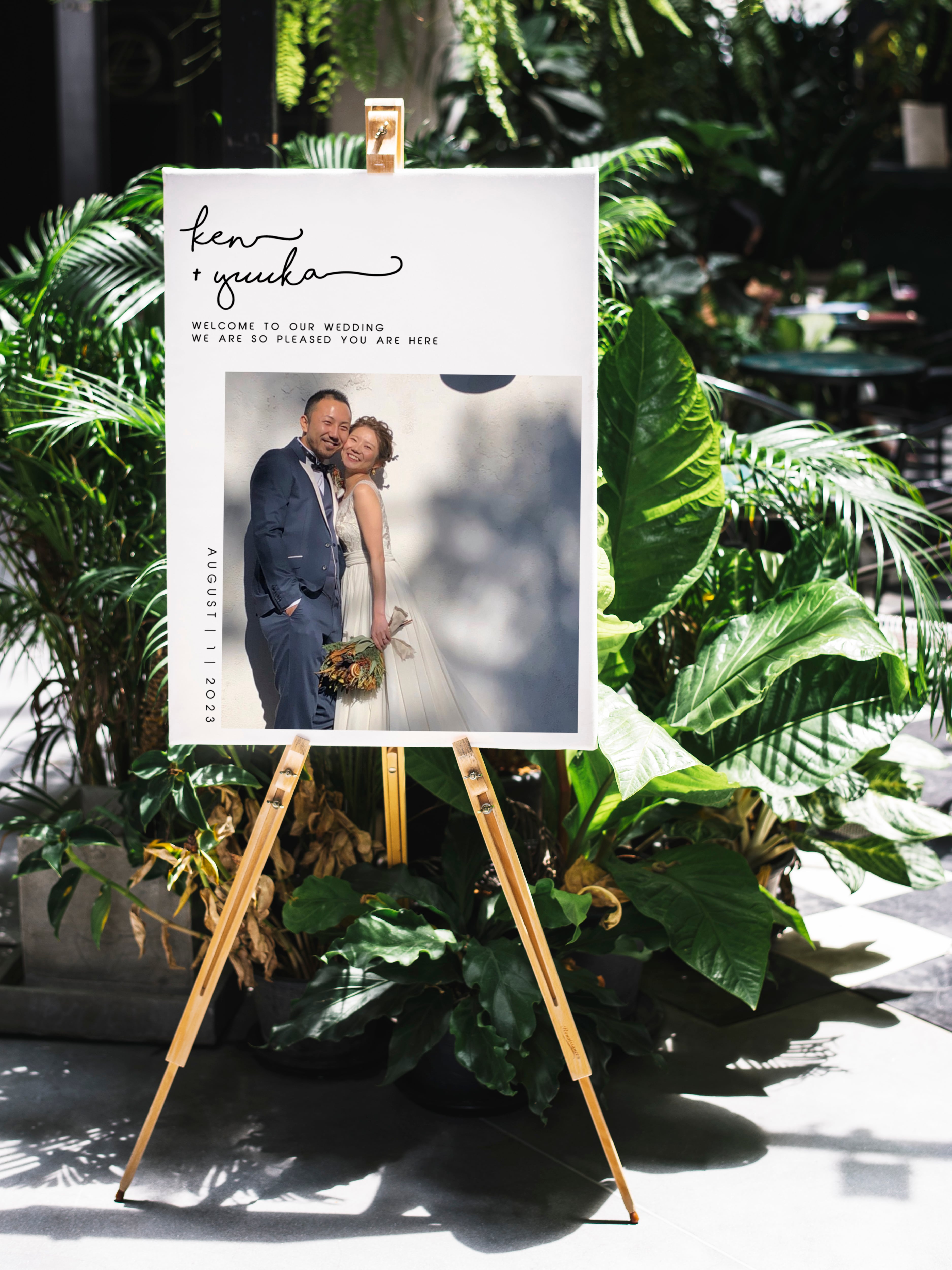 流行りのミニマルデザインを取り入れたシンプルな写真ウェルカムボード。