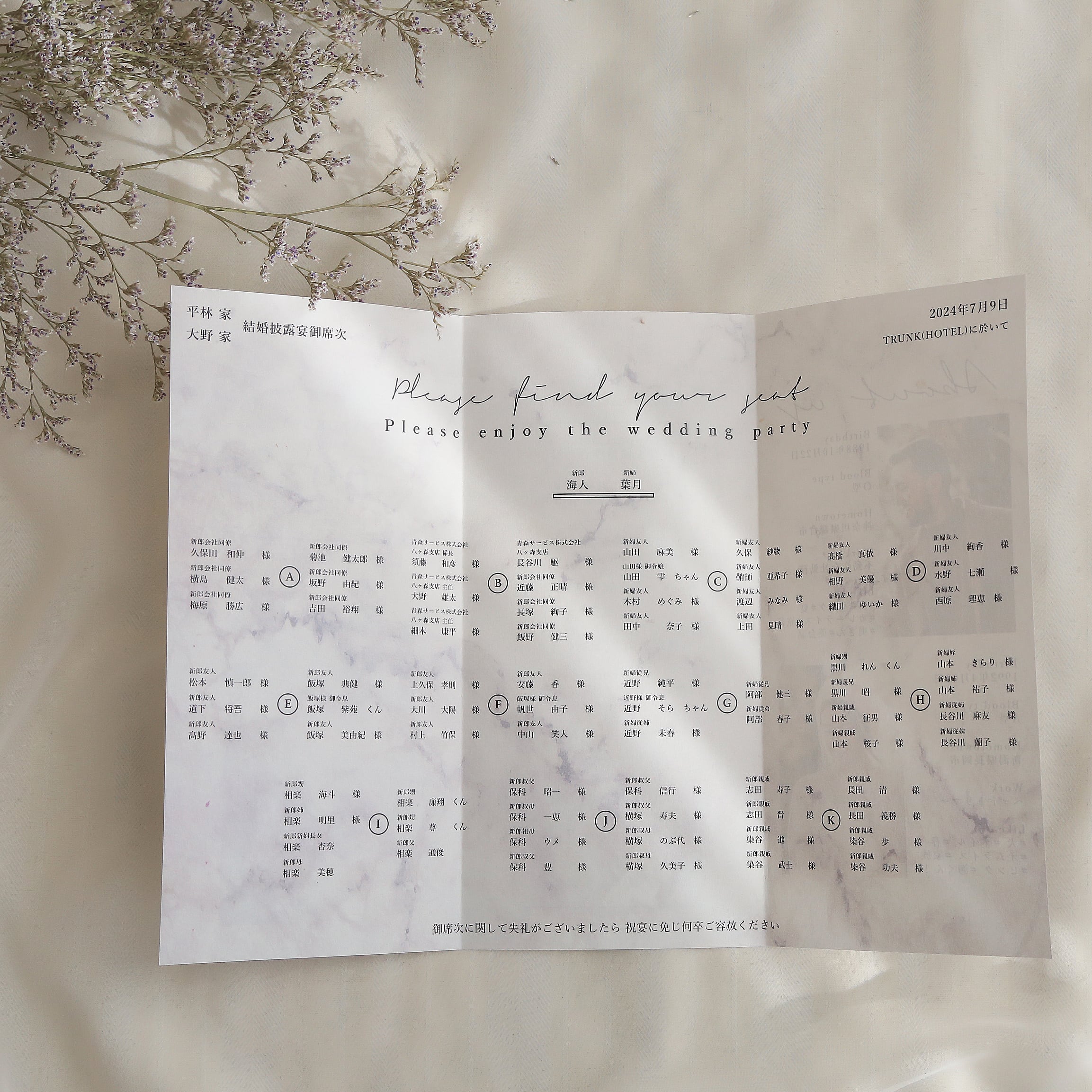 大理石柄 くすみ席次表 151円~/部│ウェディング 結婚式 メニュー表 プロフィール
