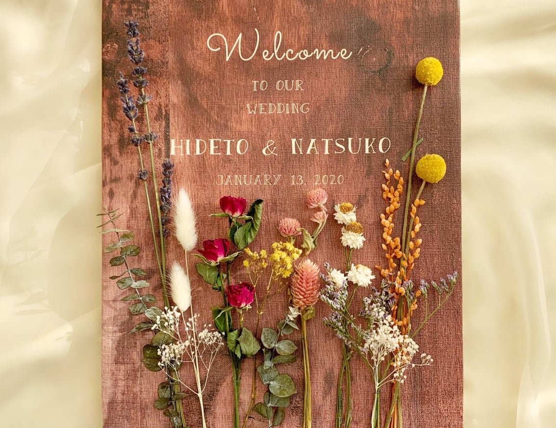 にょろにょろ ウッドウェルカムボード│ドライフラワー 装花