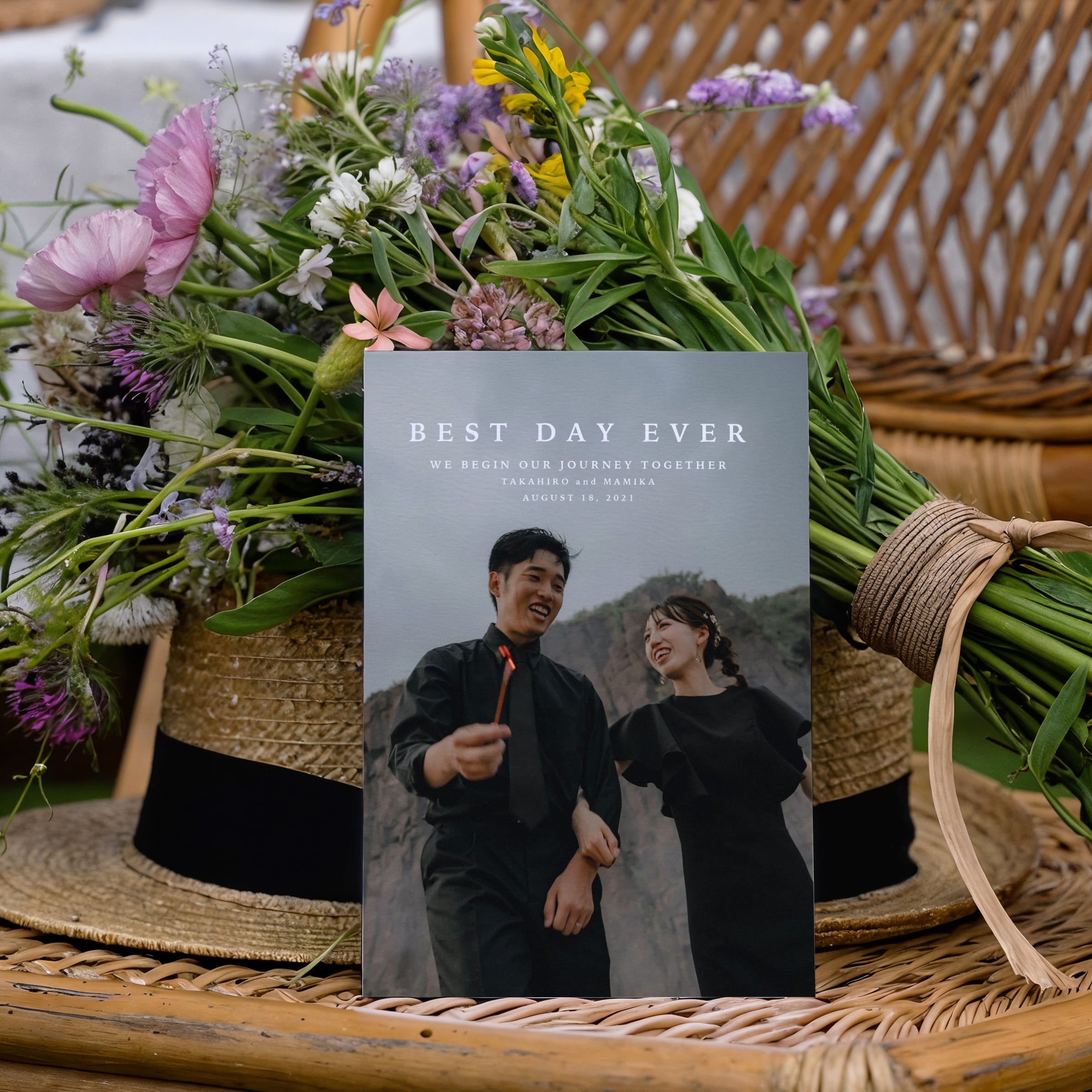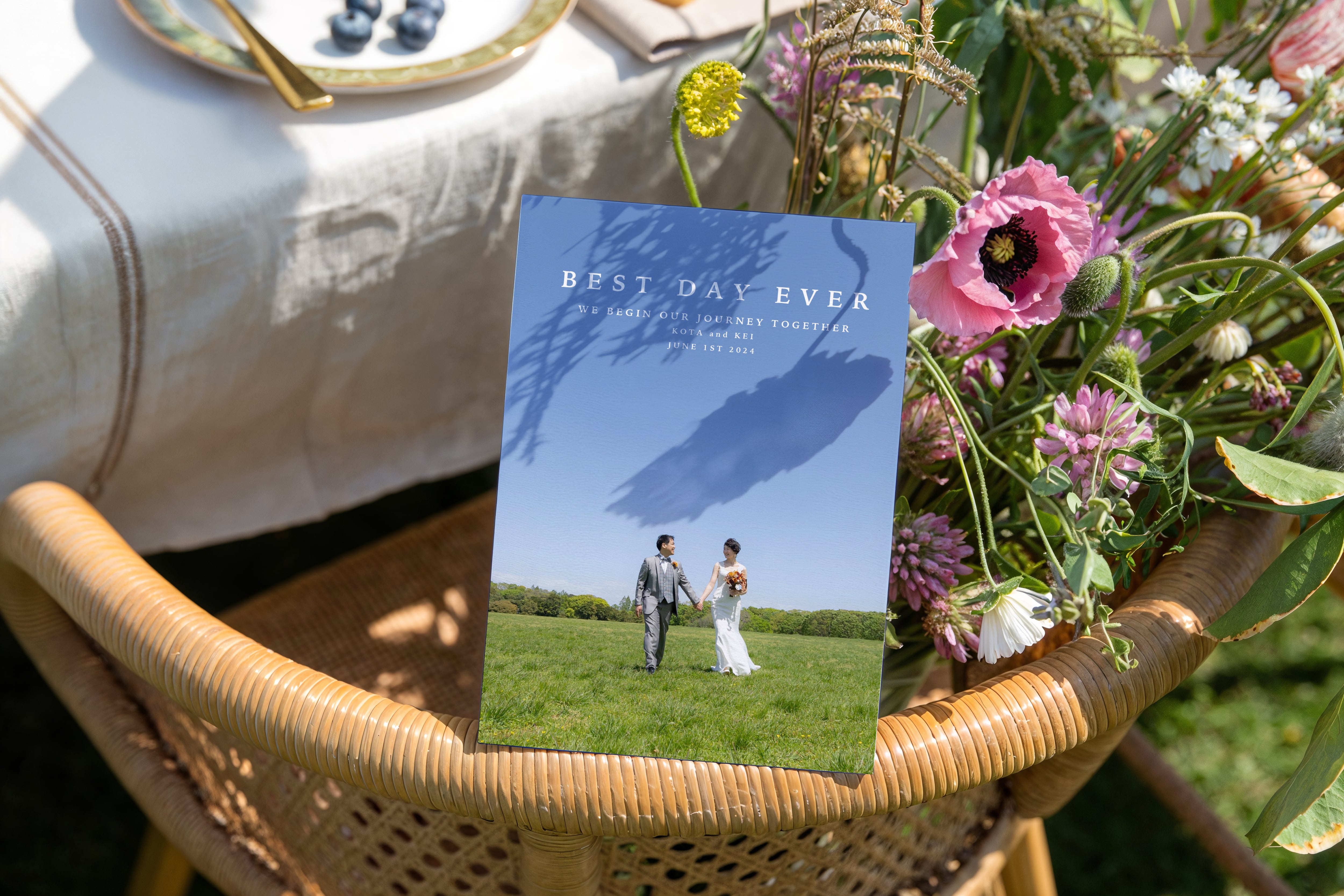 お二人のお気に入りのお写真を表紙に大きく使用して作成する席次表です。