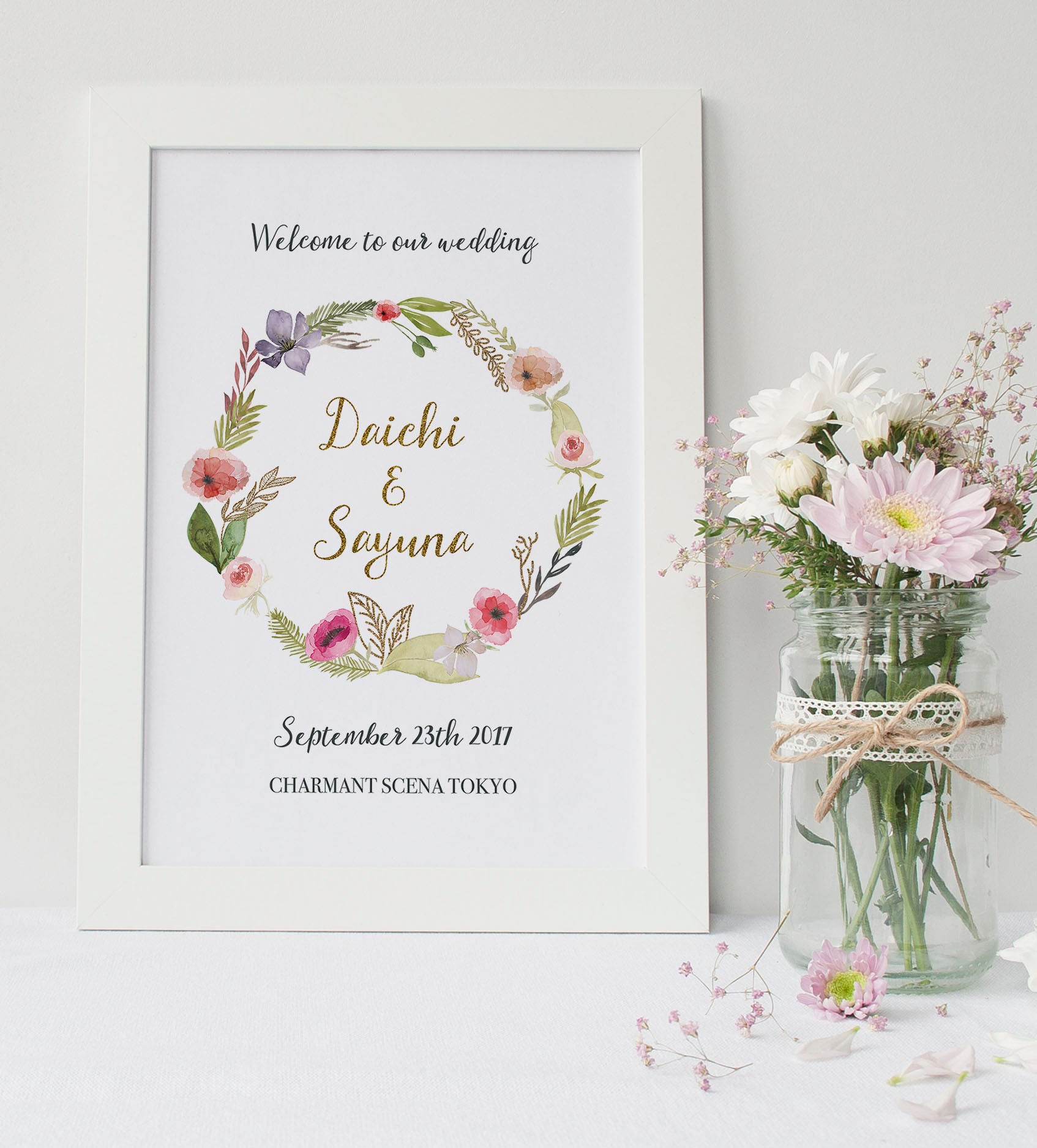 結婚式のウェルカムボードとしてだけではなくお部屋のインテリアやお店のサイン、プレゼントにもどうぞ。