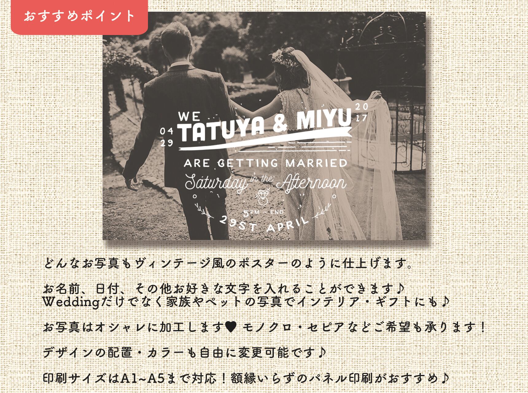 お好きな写真で作成する海外ポスター風ウェルカムボードです。