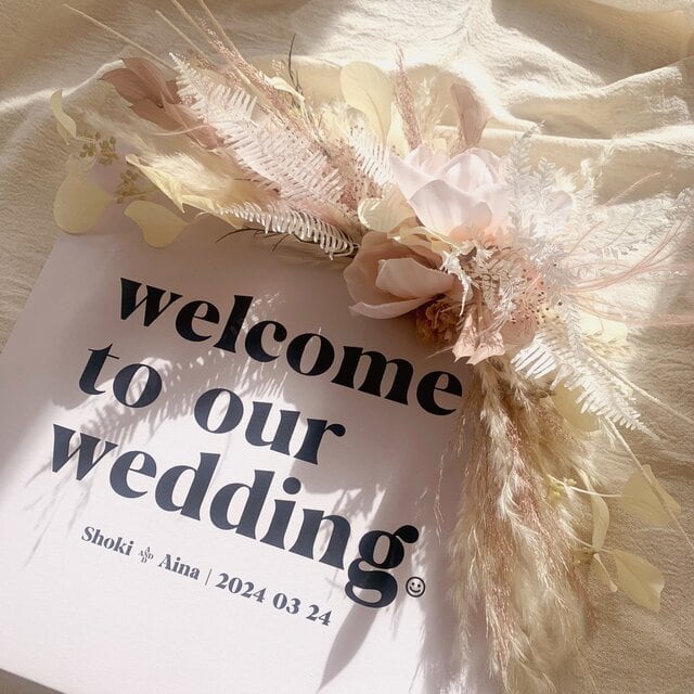 ドライフラワーとアーティフィシャルフラワー、人気のパンパスグラスをあわせてボードを彩ります。