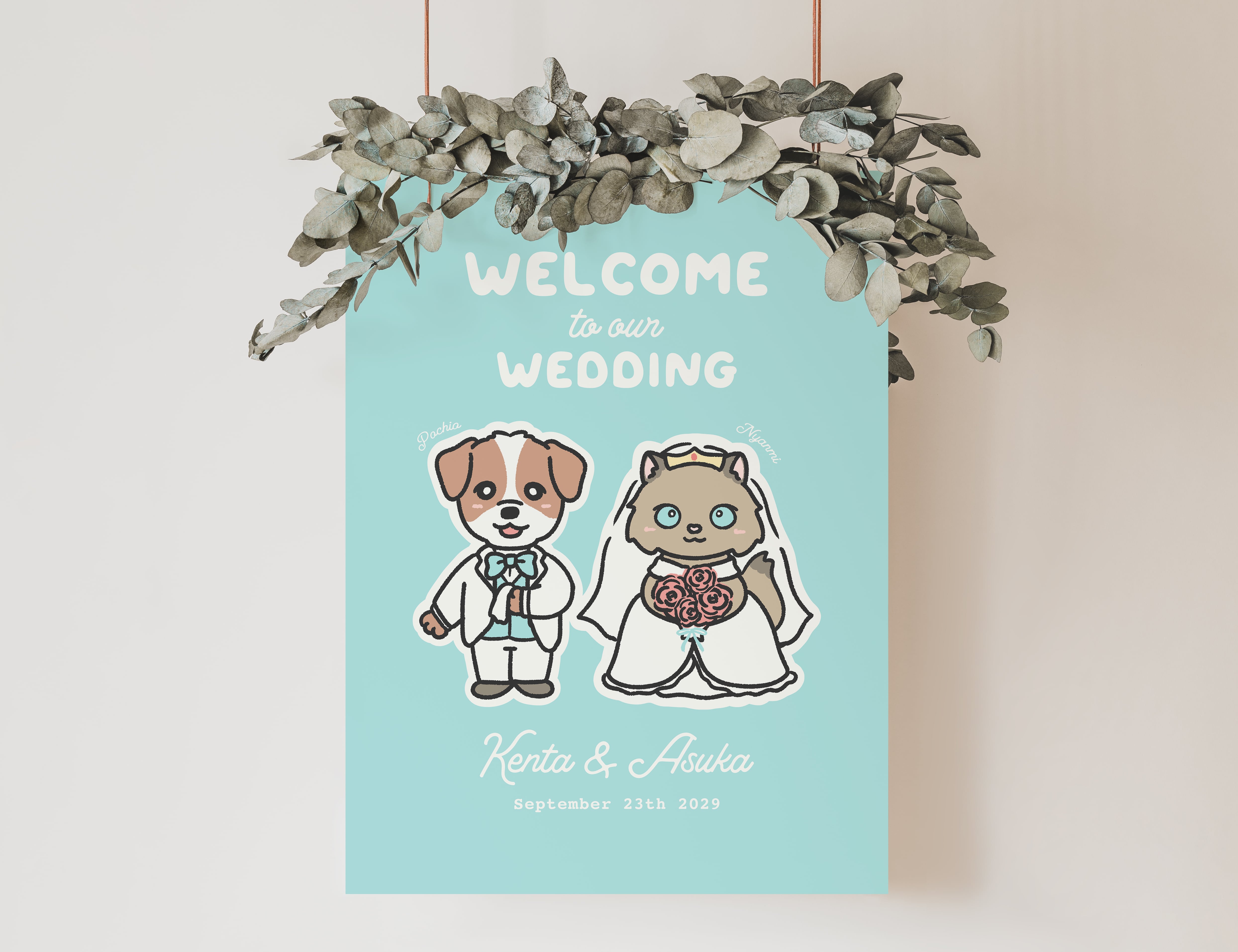 イラストレーターMinamiが描く、ペットの似顔絵イラストウェルカムボード 【デザイン1】✨