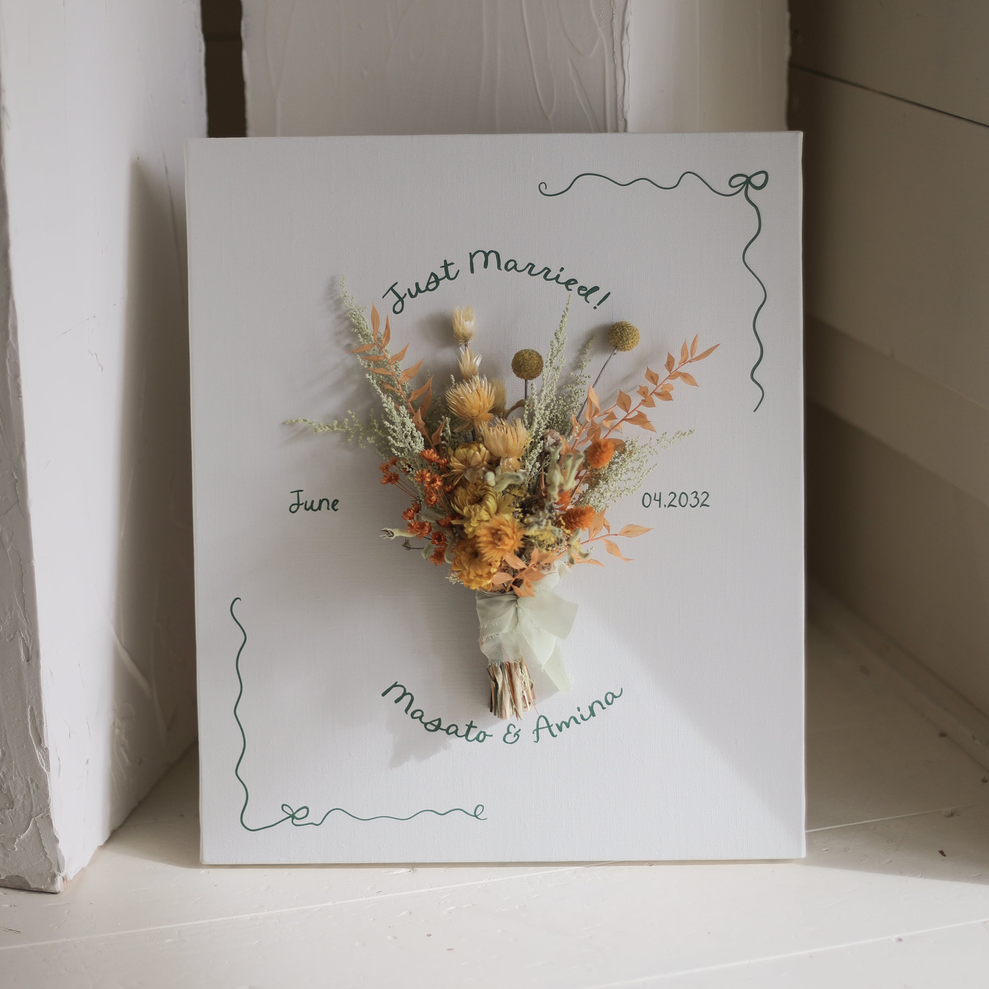 お花付きをお選びいただいた場合、スチレンパネルまたはキャンバスボードにお花を装着した状態で完成品をお届けいたします。