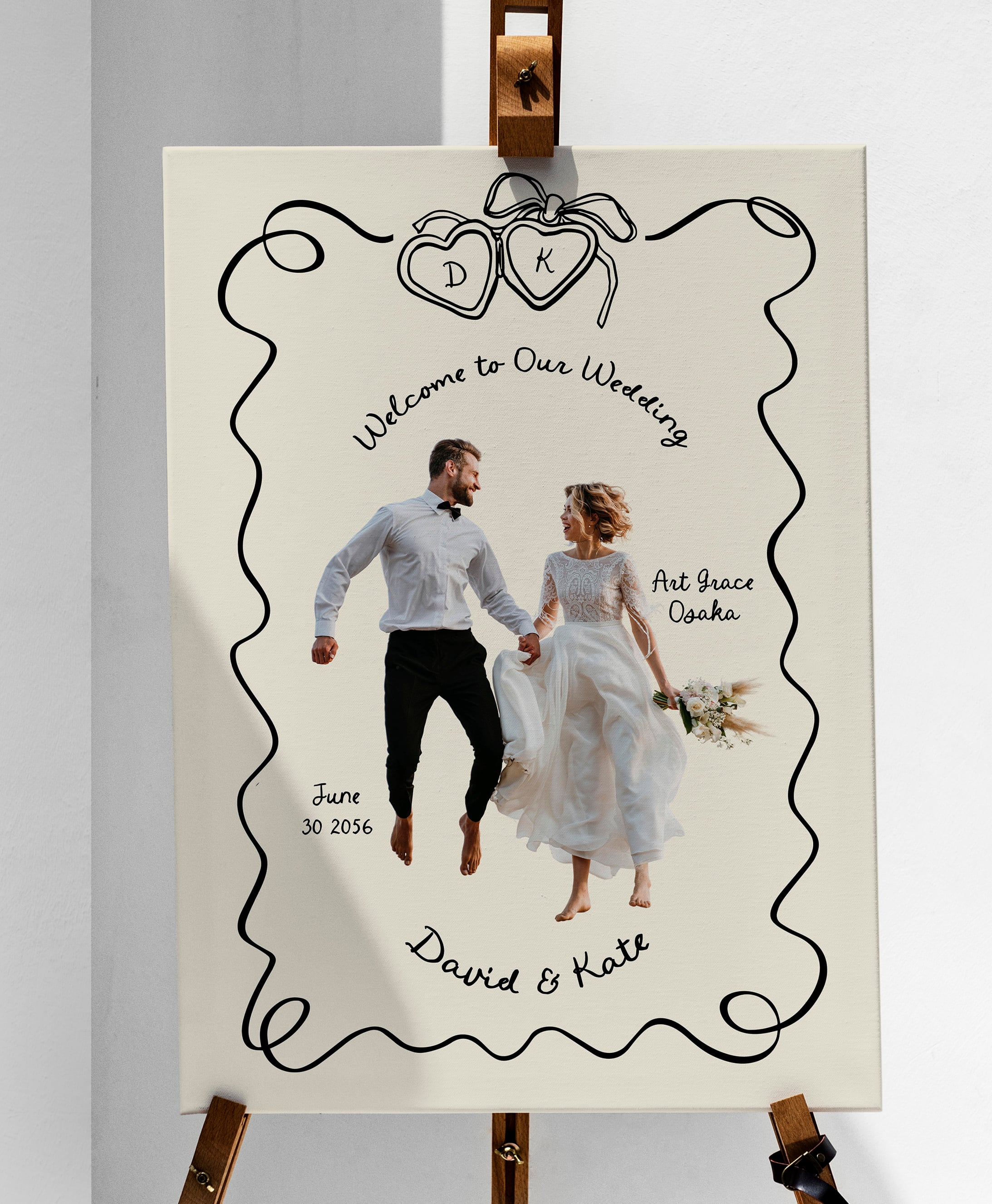 お二人のお好きな写真を加工して、ウェルカムボードを作成します。